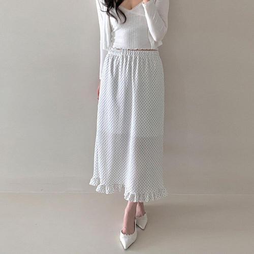 [다잇템]여자 휴양지룩 고무줄 화이트 프릴 SS 롱스커트