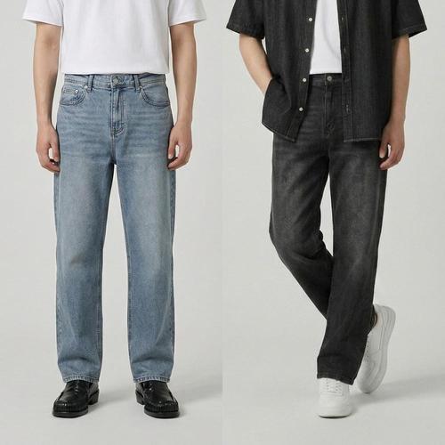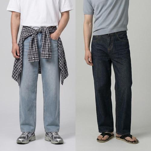 [화이트빌딩]남성 캣워싱 세미와이드 밴딩 청바지 허리고무줄