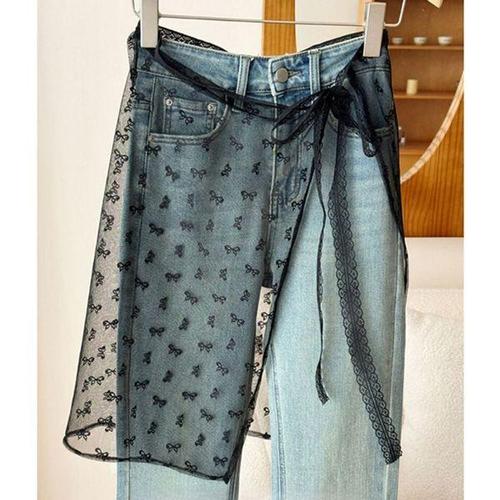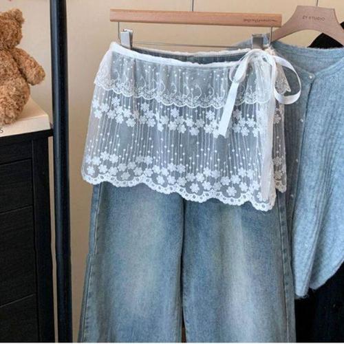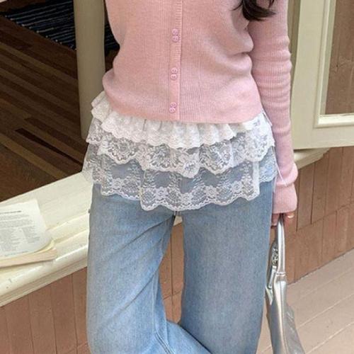 [에이치플러스몰]여성 힙커버 시스루 레이어드 랩스커트 1P 리본 레이스 랩업