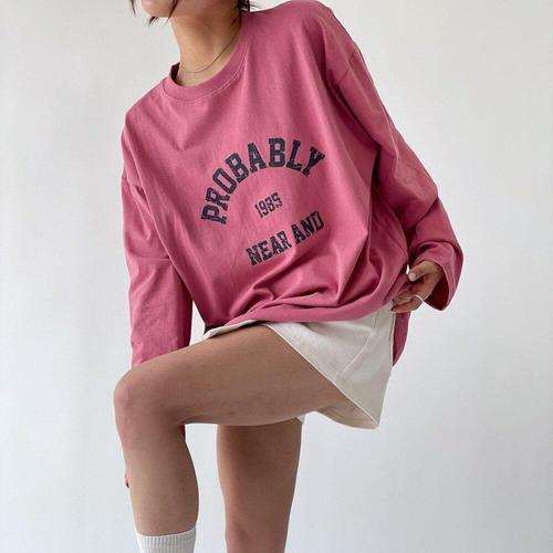[옷자락] 여자 박스티 레터링 라운드 오버핏 힙커버 긴팔 티셔츠