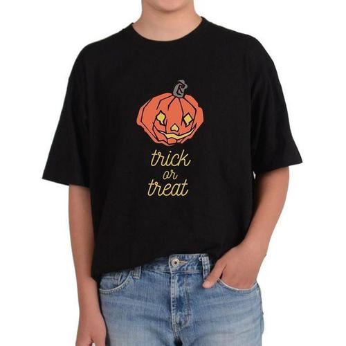 [에이치플러스몰]반팔라운드 할로윈 호박가면 사탕 주면 안 잡아먹지 트릭 전사이즈