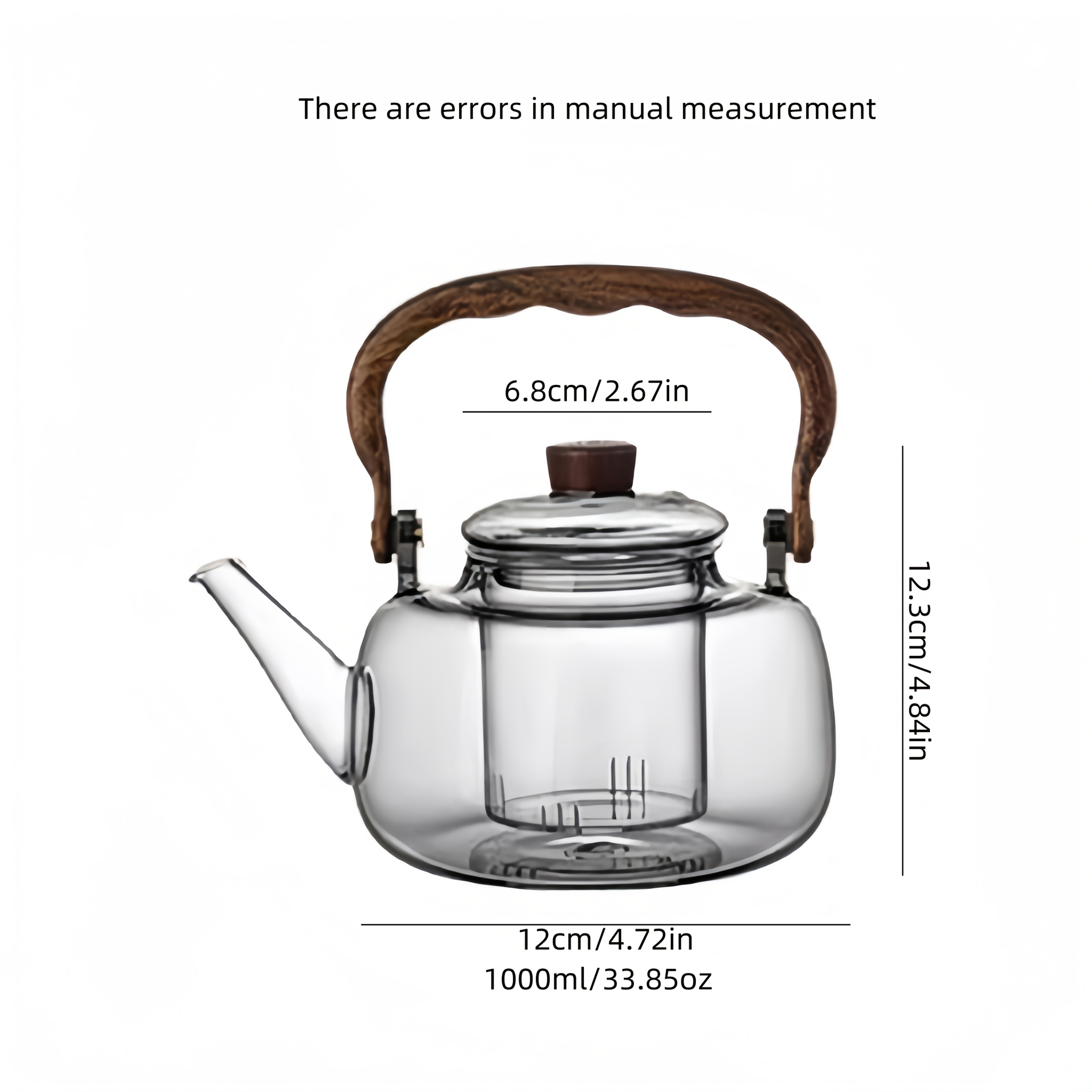 TEMU 1개 나무 손잡이 투명 유리 찻잔, 투명 유리 꽃 찻잔 - 고 붕규산 유리 재질 - 열화상 가스레인지 사용 가능 - 전기 세라믹 스토브에 적합 - 가정용 주방 찻잔