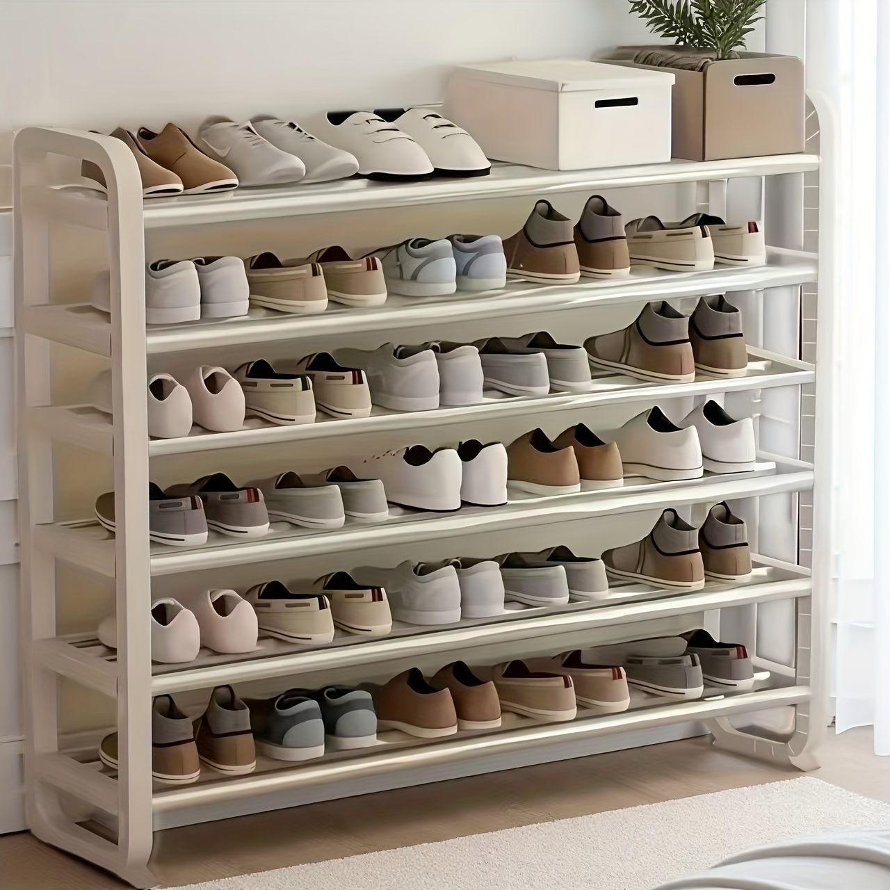 TEMU 공간절약형 럭셔리 6단 고품질 금속 신발장, 30켤레 수납 가능, 내구성 있는 슬림 디자인, 목재 불필요, 다층 철제 공예, 현관 및 기숙사 설치에 적합, 거실 레이어드 신발장과 호환, 블랙 홈 스토리지 및 정리, 다기능 도어 장착형 신발장, 침실 친화적, 백투스쿨 이스터 에디션