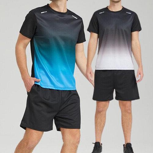 남성 트레이닝복 세트 (2피스) O넥 반팔 셔츠 반바지 세트 남성 러닝복 플러스 사이즈 티셔츠 남성 의류 여름 티셔츠