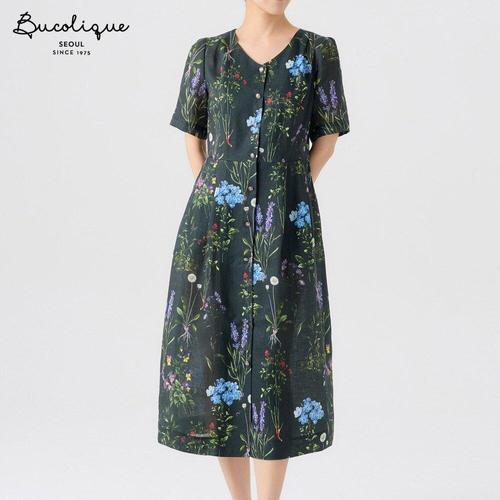 [비꼴리끄]린넨 프린트 V넥 원피스 B262WO3080