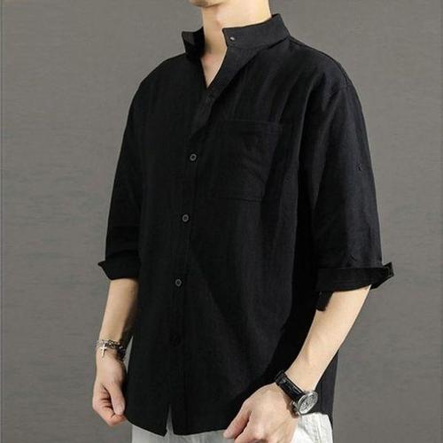 여름 남자 쿨 린넨 셔츠 7부 루즈핏 헨리넥 차이나 카라 반팔 셔츠 남성 남방