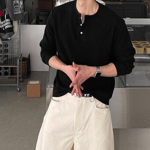 남성용 헨리넥 반팔 티셔츠 여름 배색 포인트 셔츠 WFL9F0Y