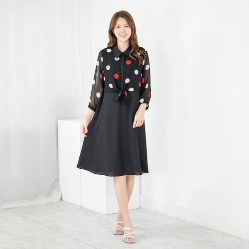 [드리다]드리다 라운드 H라인 빅사이즈 쉬폰 정장 원피스 40-50대 미시 중년여성 엄마옷 하객 모임 상견례