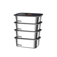 엠토이 스테인리스 냉장고용 밀폐 보관 용기, 600ml, 4개