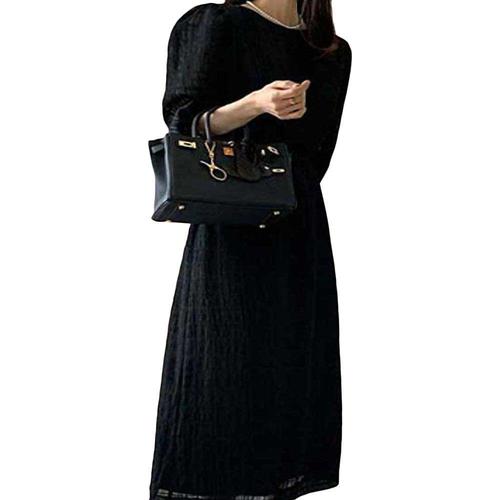 [에이치플러스몰]여성 시스루 긴팔 롱원피스 1P 7부 소매 출근 데이트