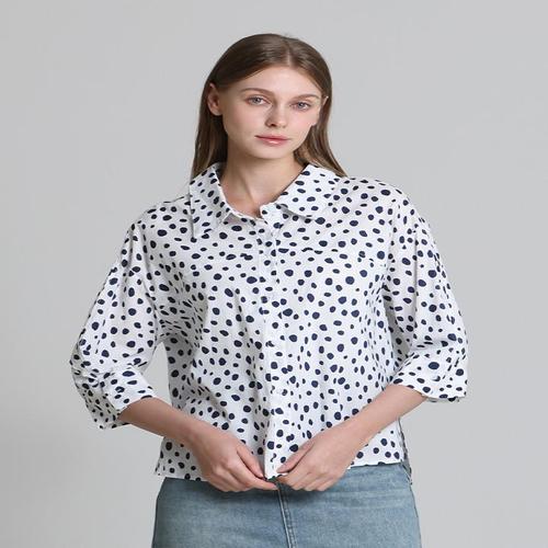 [아날도바시니][아날도바시니(ARNALDO BASSINI)] 코튼 달마시안 도트 7부 카라 셔츠 (택가격 138000원)