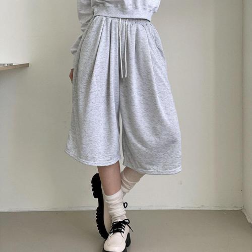 [옷자락]여자 버뮤다팬츠 투턱 와이드 7부 끈 밴딩 봄 반바지