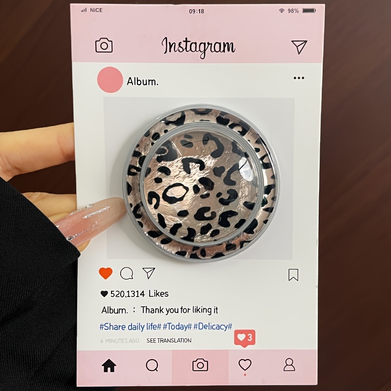 TEMU 고급 패션 프린트 앰버 브라운 원형 마그네틱 맥세이프 폰 홀더, 강력한 마그네틱 흡착 기능의 접이식 및 접이식 디자인