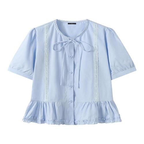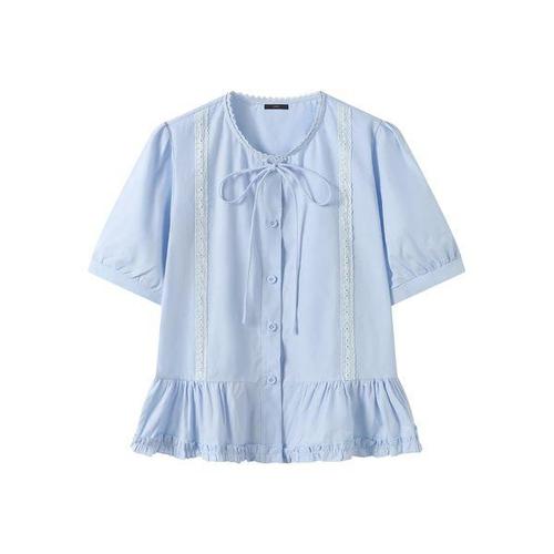 [르샵] 레이스 라인 프릴 반팔 블라우스 (DQ2BA022A)