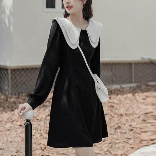사랑스러운 빅카라 포인트 짧은 미니 긴팔원피스 허리끈 A라인 WFLS32G