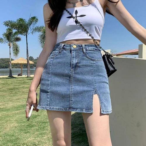 [셀럽하우스]여성 QYTQ6330 A라인 데이트룩 데님 하이웨이스트 슬릿 청치마