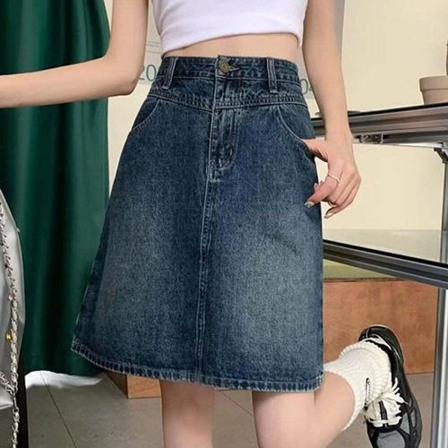 [셀럽하우스]세미 UCZM1682 A라인 여성 하이웨스트 미디 데님 스커트