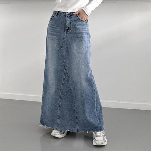 [옷자락] [시즌오프]데님스커트 맥시 트임 a라인 긱시크룩 치마_5