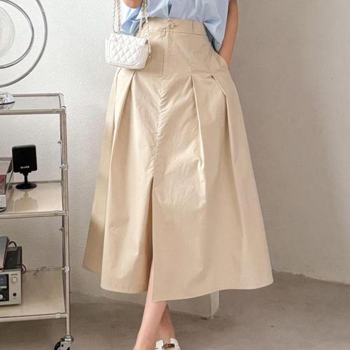 [옷자락] [시즌오프]여름 등원룩 핀턱 앞트임 A라인 코튼 롱스커트_5