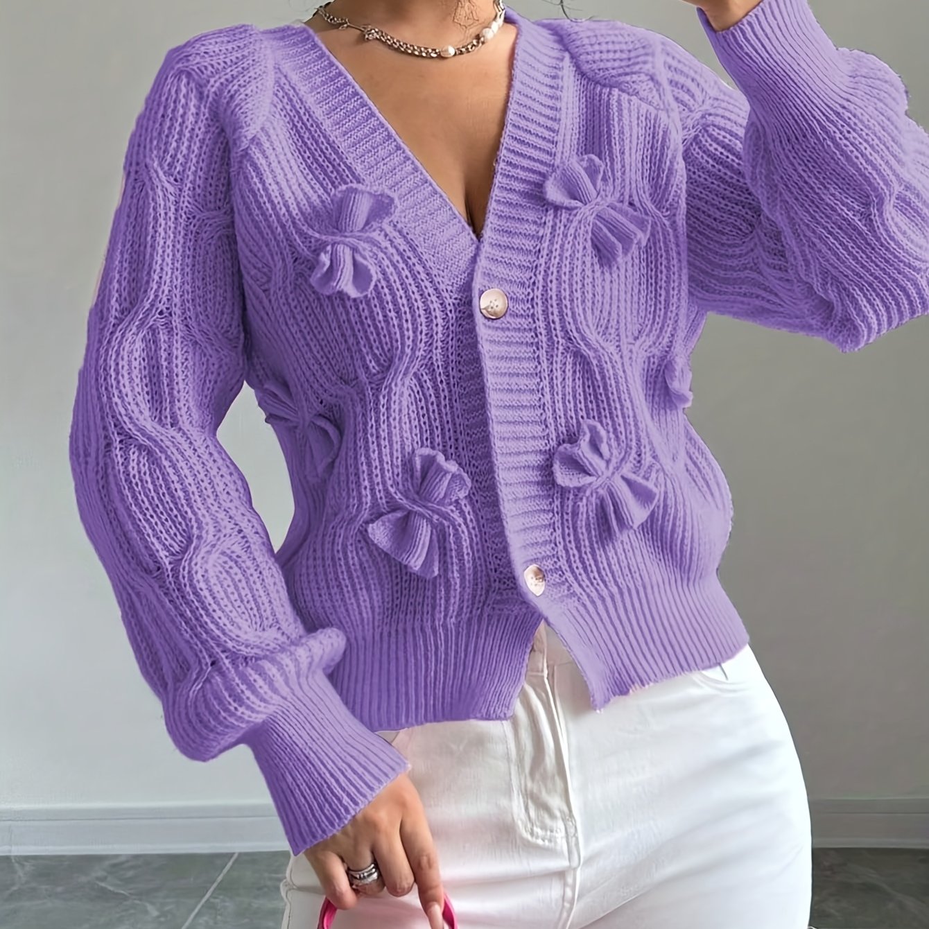 TEMU 우아한 여성용 3D 리본 긴팔 가디건