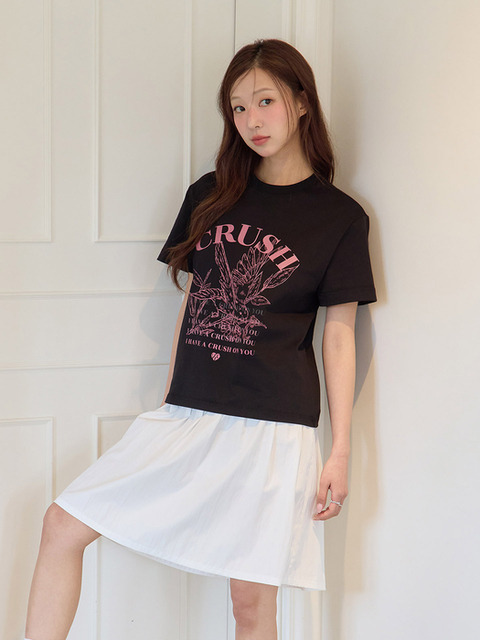 [발렌타인 크러쉬] (W) Swallow with Daisy T-Shirt T-Shirt(V601W) - Black