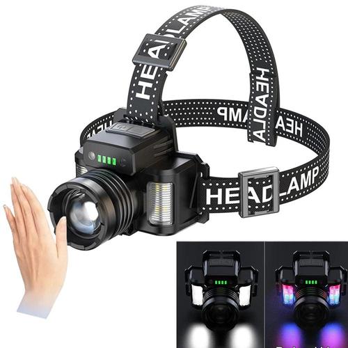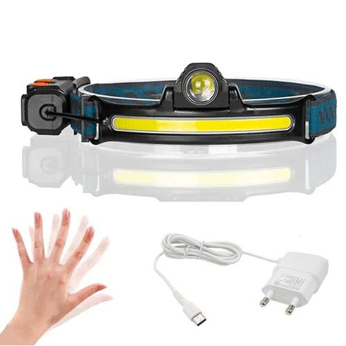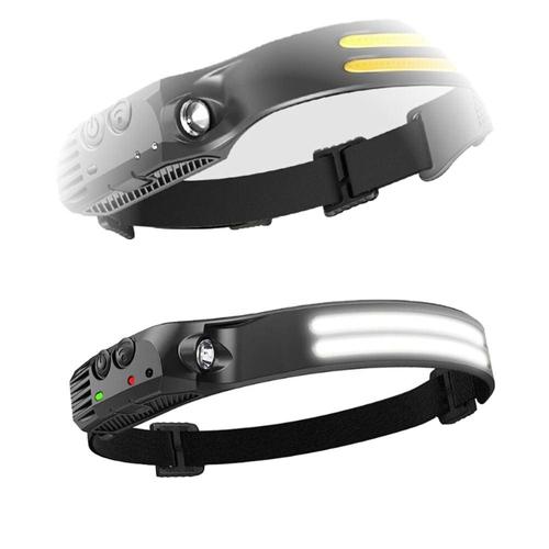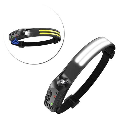 USB 충전식 COB LED 유도 헤드램프(1200mAh 내장 배터리 포함) 헤드 손전등 야외 캠핑 낚시 헤드 랜턴