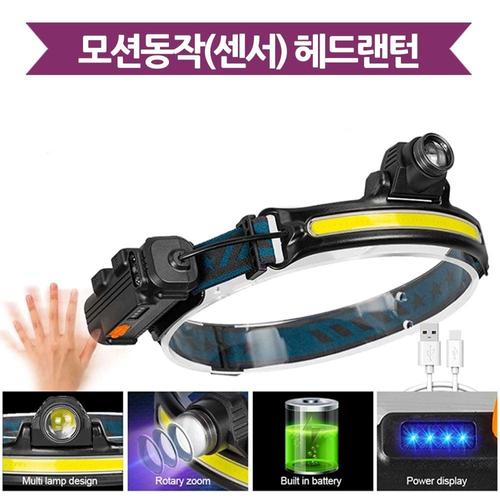 LED헤드랜턴 cob LED 충전식 센서동작 낚시 줌 등산 랜턴 헤드랜턴 야외헤드랜턴 HWE2F9B6
