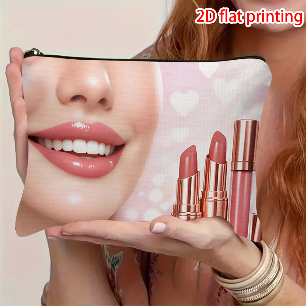 TEMU 립스틱 테마 화장품 가방 1개, 여행 및 선물용 - 립스틱과 스마일 디자인의 부드러운 패브릭 파우치, 립스틱 홀더 및 휴대용으로 적합한 컴팩트 사이즈, 2D 평면형