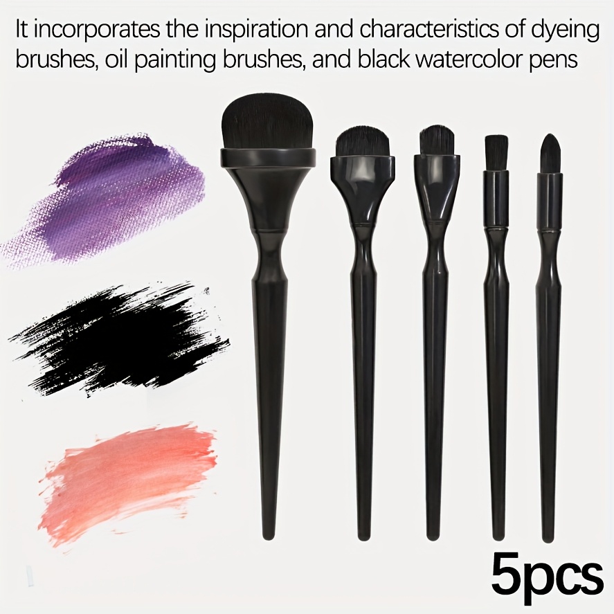 TEMU 2/3/5개 인체공학적 손잡이 렌더링 브러쉬 세트 - 블랙 플라스틱 유화, 수채화, 잉크 워시, 숯, 초크, 파스텔, 엠보싱 브러쉬, 인체공학적 그립, 정밀 제어를 위한 내구성 플라스틱 손잡이