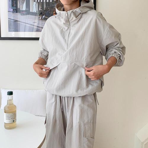 [옷자락] 여자 절개 포켓 반집업 후드 윈드브레이커