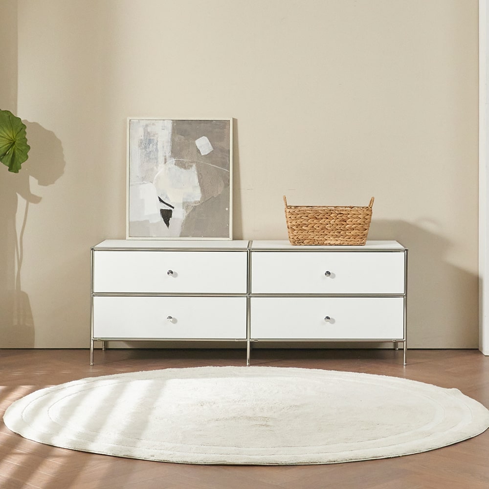 해피 모던센츄리 1350 모듈 2단 철제 2칸서랍 높은 수납 TV 티비다이 거실장