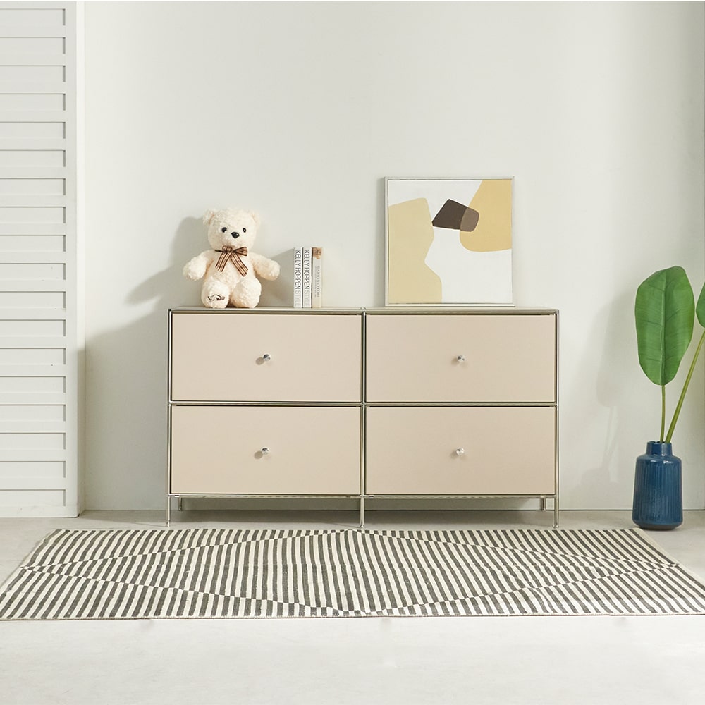 해피 모던센츄리 1350 모듈 2단 철제 2칸서랍 낮은 수납 TV 티비다이 거실장