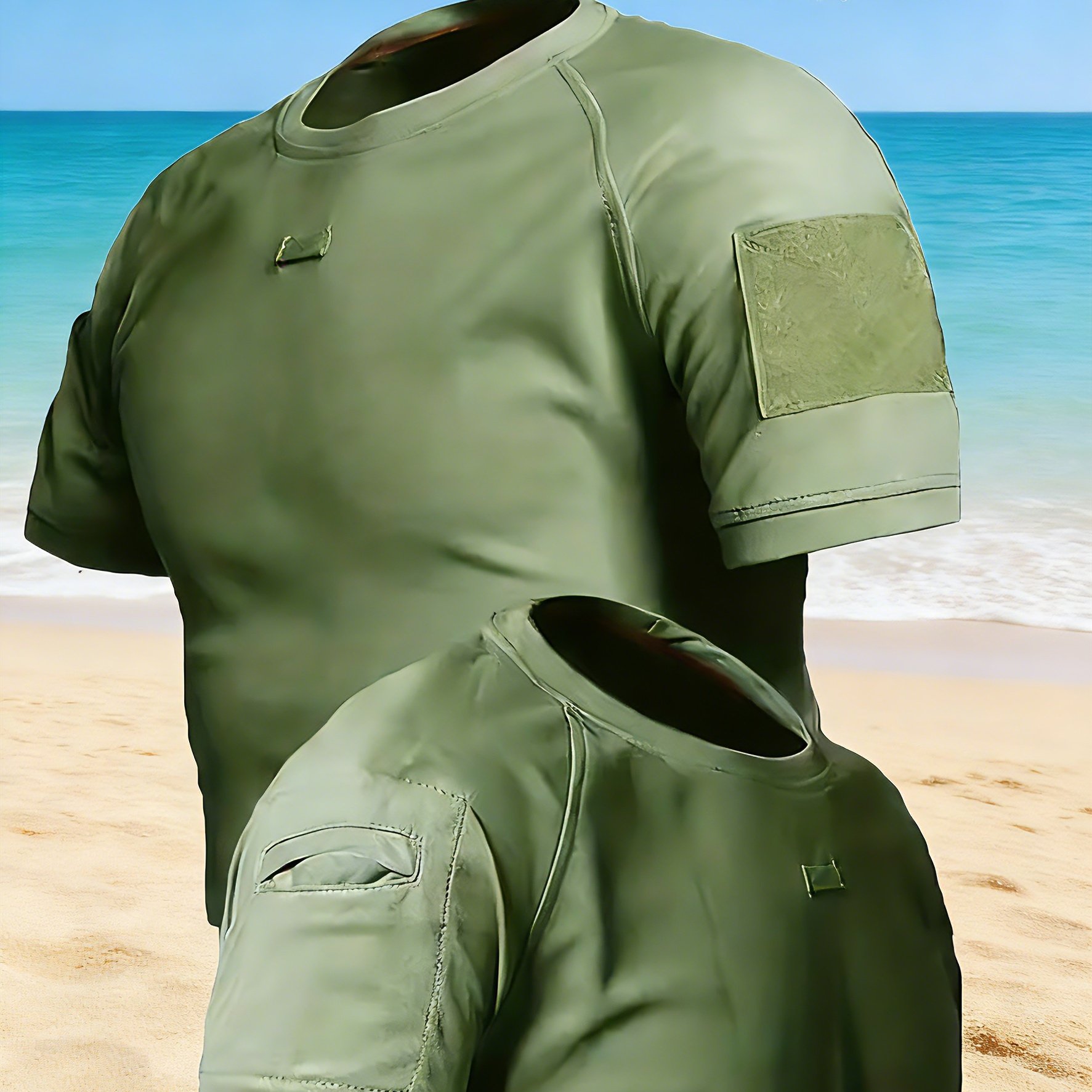 TEMU 남성 여름 야외 하이킹 등산 캐주얼 퀵 드라이 반팔 티셔츠, 포켓 루즈핏 플러스 사이즈 통기성 라운드넥 탄성 반팔, 다기능 데일리 웨어 스크래치 방지 내구성 작업복 단색 상의