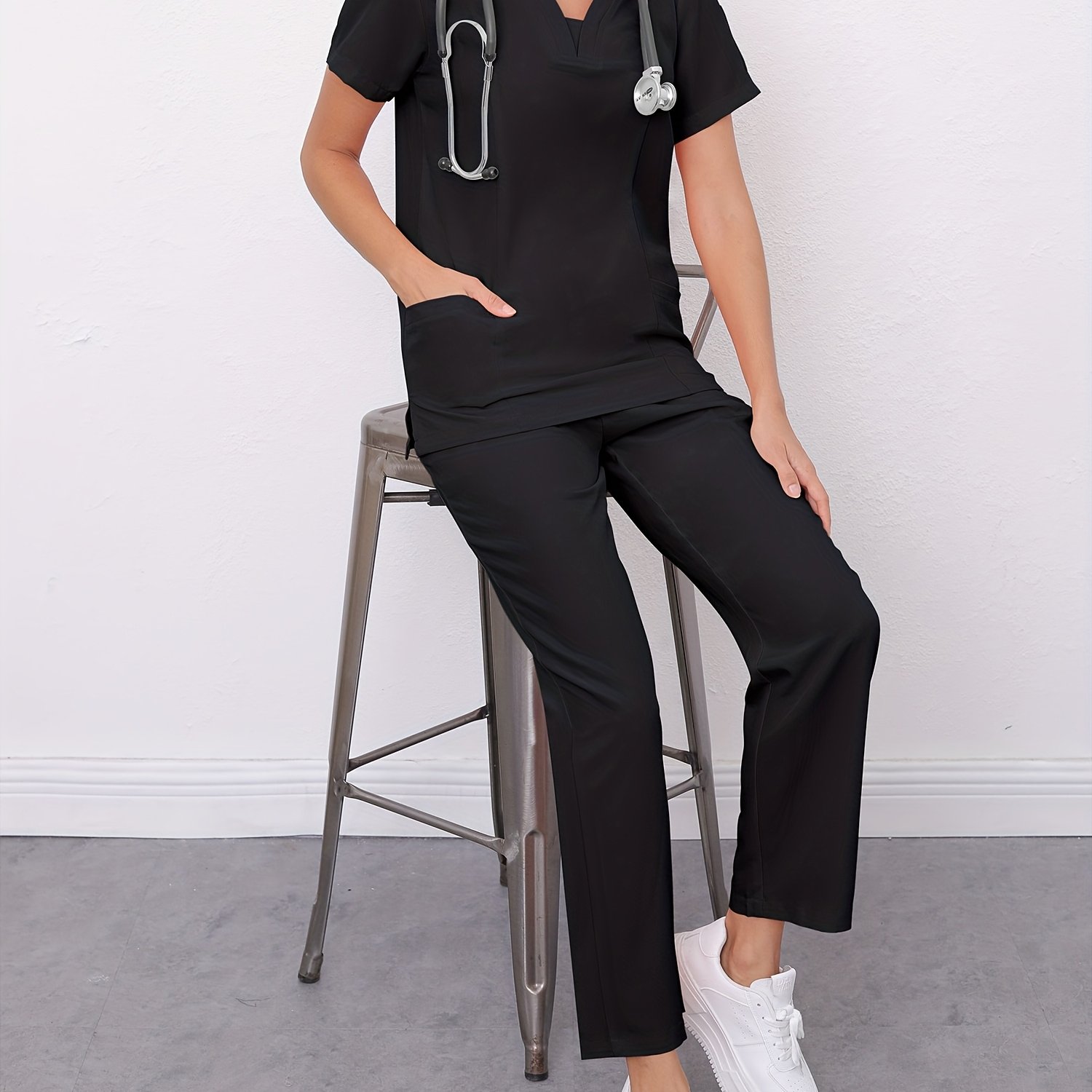 TEMU 여성용 조깅 무광 세트, 신축성 있는 간호사 유니폼 작업복, 주머니가 있는 스크럽, 통기성 있는 신축성 상의와 드로스트링 주머니 바지 세트