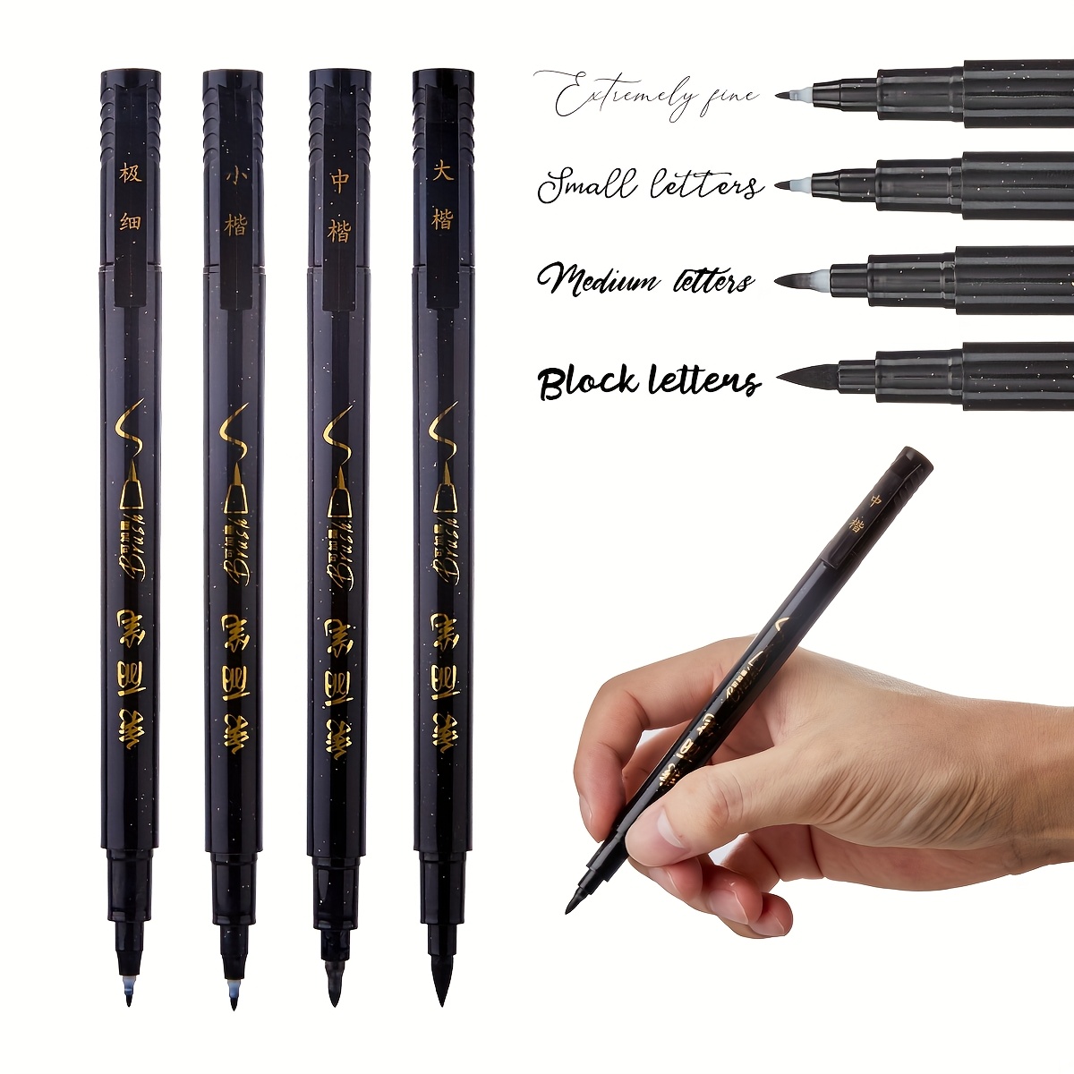 TEMU 핸드레タリング펜 4종 세트, 펜촉 4가지 사이즈, 가는 선과 굵은 선 제어 기능 포함, 초보자 및 아티스트용, 미술 드로잉, 만화 스케치, 스크랩북킹, 저널링, 아시아 서예 예술용 - 플라스틱 표면