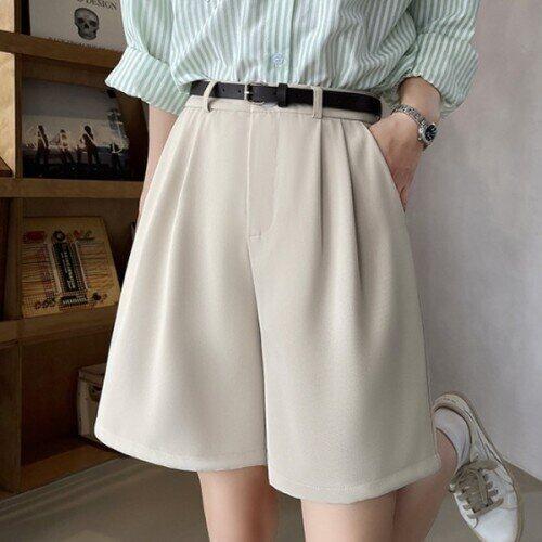 여성 반바지 봄 여름 캐주얼 하이 웨스트 a 라인 반바지 루즈 와이드 레그 시폰 반바지 세련된 레이디 블랙 화이트 정장 반바지