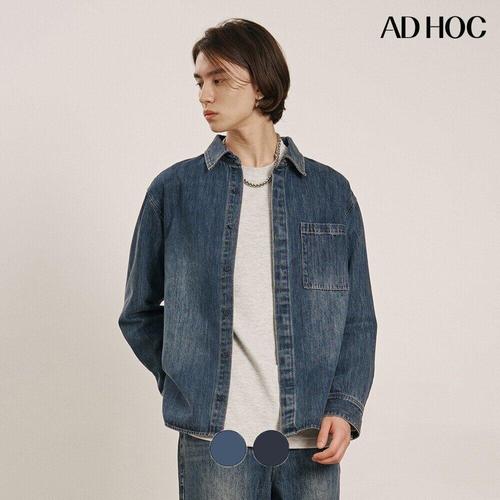 [애드호크]남성 원포켓 히든 버튼 데님 셔츠HB7LS02_IC