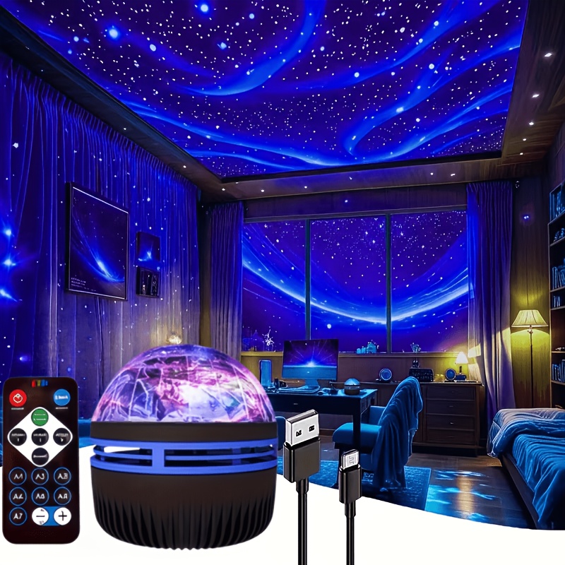 TEMU 3종 세트 (블랙 오로라 효과 USB 프로젝터 조명 + USB 케이블 + 다기능 리모컨), 분위기 조성 및 창의적인 가정용 앰비언트 조명용, 휴일 및 기념일을 위한 이상적인 선물