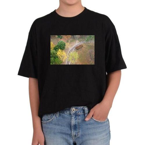 [에이치플러스몰]오버핏반팔티 공원사진 단풍 가을 가을공원길은 사색의시간 전사이즈
