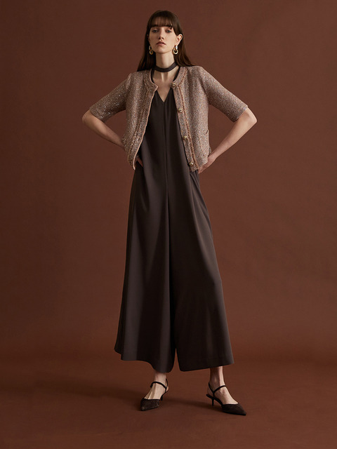 [마레디마리] Sequin Half-Sleeve Knit Cardigan - Pink