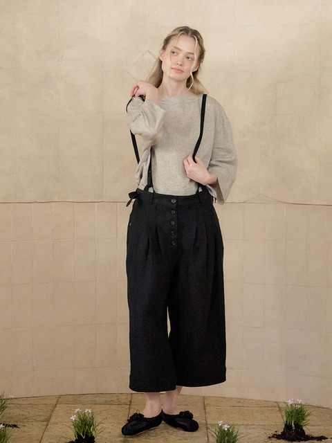 [잼머] 그레인 서스펜더 린넨 팬츠 - 블랙