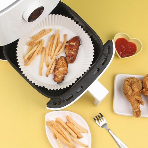 50개 일회용 에어프라이어 종이 기름 흡수 및 방유 종이 트레이 논스틱 베이킹 패드 대형 강력 사각형