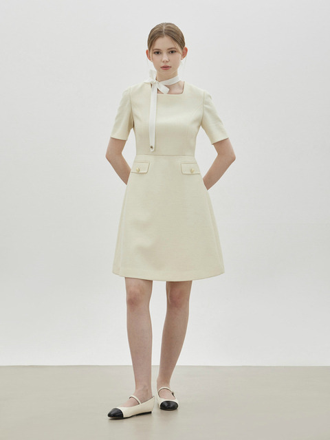 [씨씨콜렉트] 모크넥 타이 패널 원피스 IV_C262MSE704