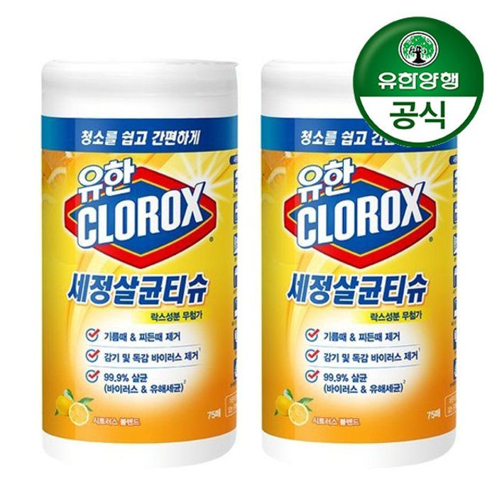 유한양행 [결제시5%추가]유한양행 유한크로락스 세정살균티슈 시트러스 블렌드 75매 x 2개