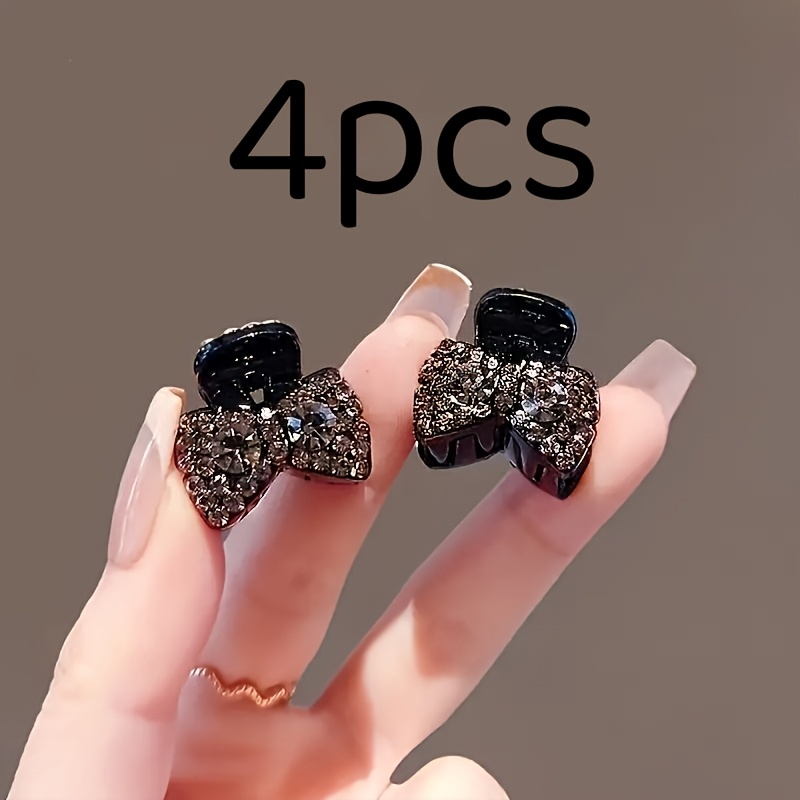 TEMU 4개 반짝이는 라인스톤 리본 헤어 클립 - 빈티지 스타일 레진 사이드 클립, 여성용 헤어 액세서리, 완벽한 발렌타인데이 선물