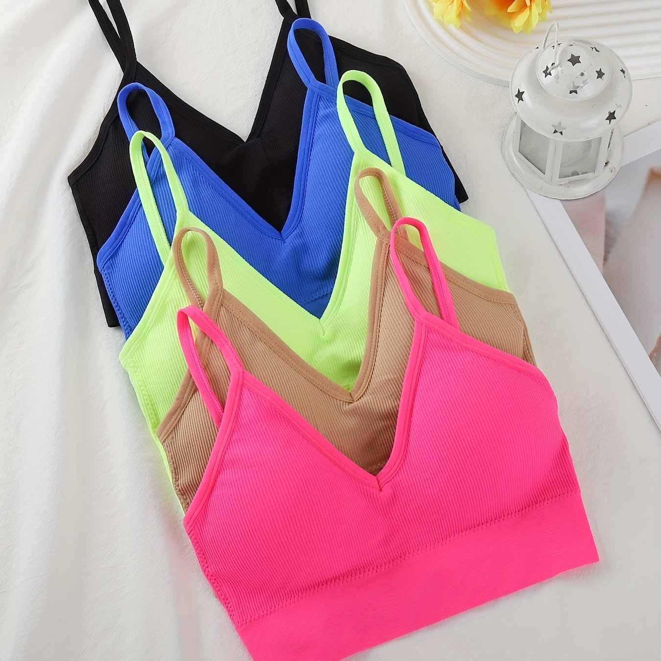 TEMU 여성용 스포츠 브라 5개 세트, 노백 요가 피트니스 러닝 탱크탑, 아우터웨어용 랩 브라