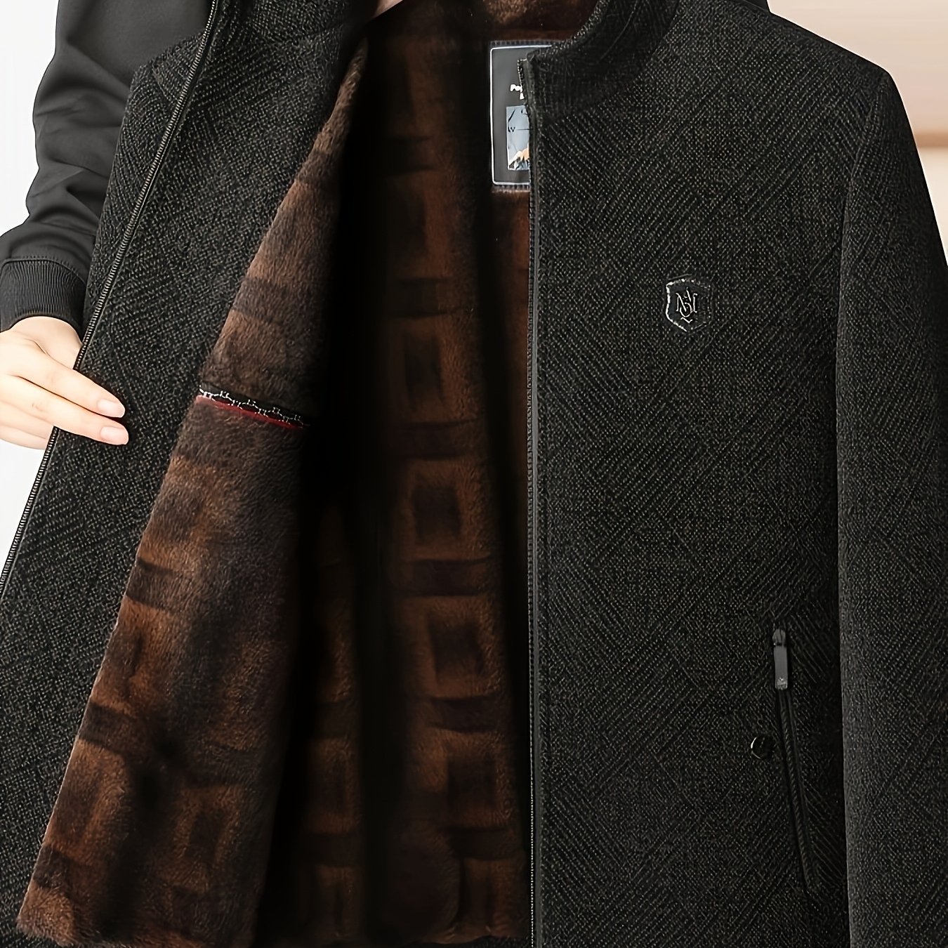 TEMU 피어슨 OBM 겨울 중년 남성용 인조 밍크 퍼 안감 스탠드 칼라 자켓, 남성용 안감 보온성 강화 두꺼운 집업 아우터웨어