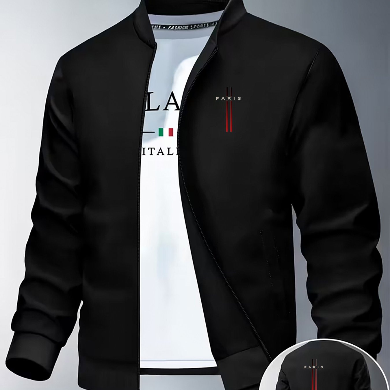 TEMU 남성용 파리 프린트 캐주얼 자켓, 스탠드 칼라 재킷 아우터웨어, 스타일리시한 스탠드 칼라 디자인, 캐주얼웨어용으로 이상적