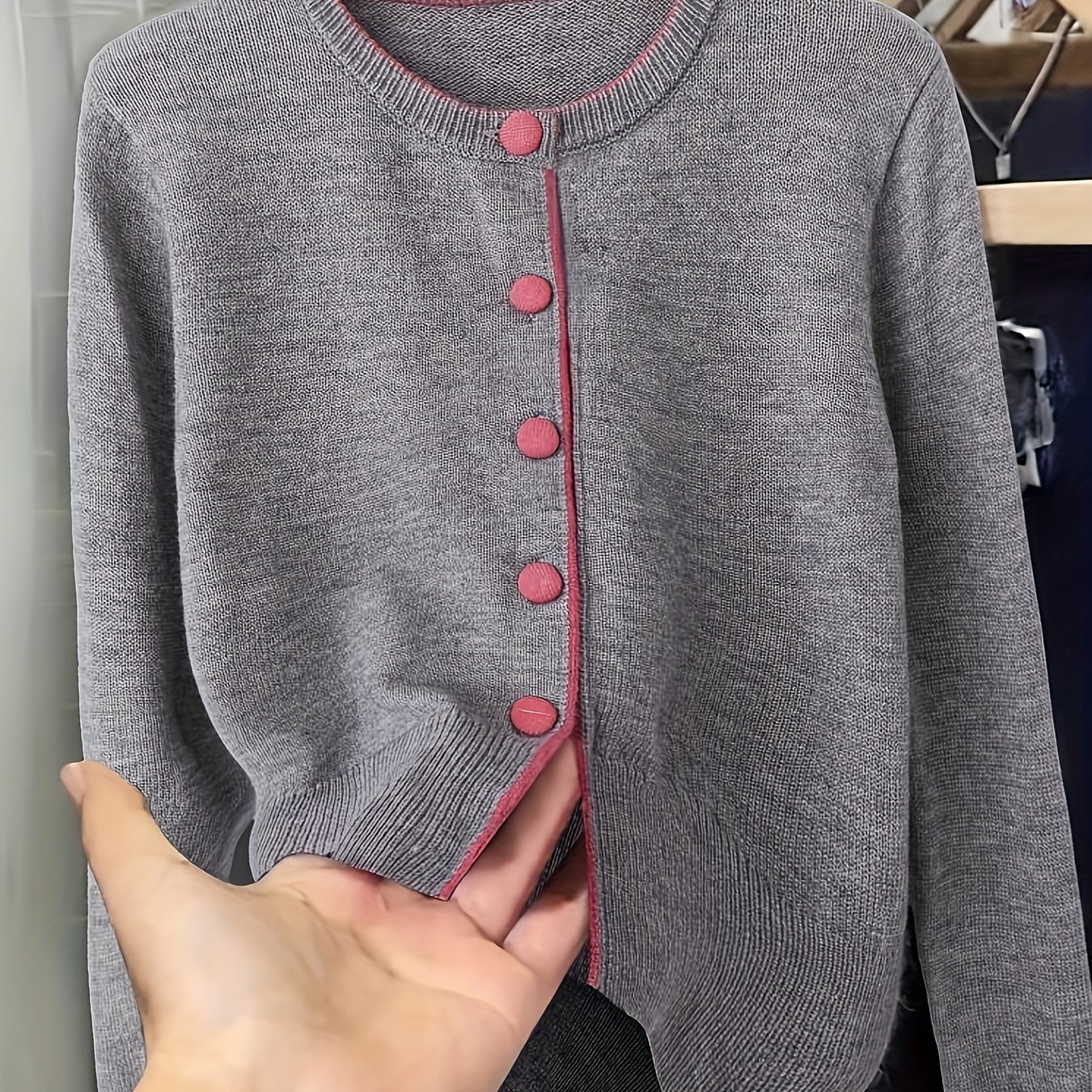 TEMU 새로운 루즈핏 라운드넥 스웨터, 솔리드 컬러 가디건, 봄과 가을에 어울리는 다용도 탑