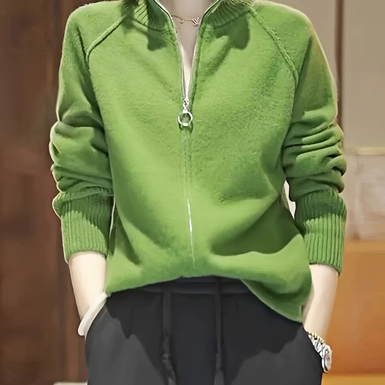 TEMU 여성용 트렌디 루즈핏 그린 지퍼업 가디건, 게으른 겨울에 완벽